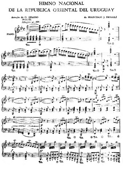 Partitura imnului naţional al Republicii Uruguay