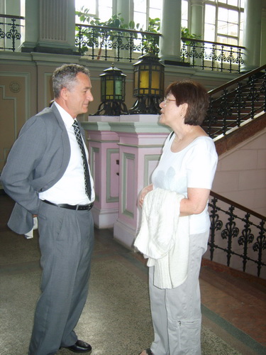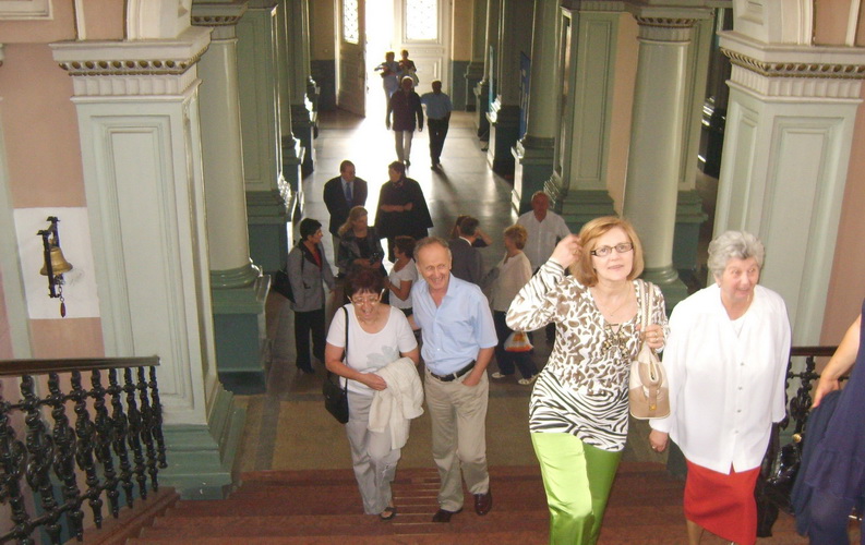Când privesc tabloul, mă gândesc că am avut parte de câțiva profesori cu totul excepționali. Cu unii colegi am legat prietenii trainice, o parte au devenit chiar cititori ai revistei Baabel. Dar ce mi-a plăcut cel mai mult a fost totuși clădirea, fațada cu ferestrele arcuite, cu statuia Alma mater deasupra intrării, holul cu coloane, scara de onoare din marmură roșie, sala festivă, „clopoțelul” de câteva kilograme bune… Iată câteva imagini de la întâlnirea din 2011.
