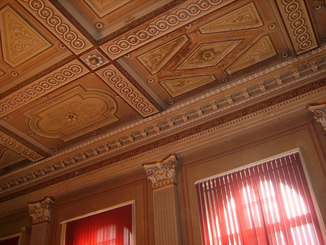 În sfârșit am aflat și cine a fost arhitectul: Jószef Diescher din Budapesta. Interesant că exact în aceeași perioadă, el a proiectat și Gimnaziul Vörösmarty din Pesta și partea de sus a fațadei este aproape identică – dar cred că școala din Arad este mult mai reușită! Specialiștii se cam contrazic între ei: stil eclectic, neobaroc, neorenascentist – eu îl numesc „stil Franz Josef” și cred că asta spune totul.