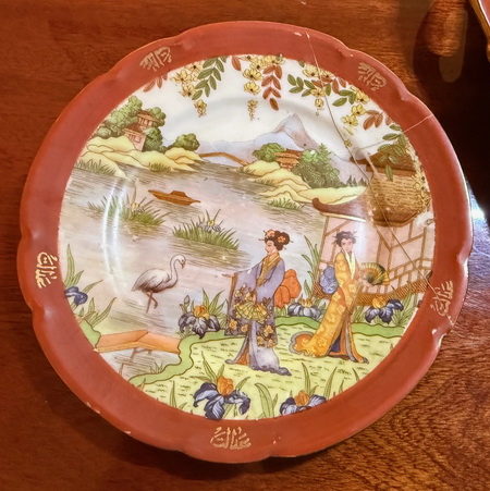 Cele patru farfurii „cu japoneze” aşezate pe o tavă ”cu japoneze” şi păstrate în vitrina bufetului din sufragerie sunt singurul serviciu de porţelan fin pe care-l posed… Şi acela desperecheat, lipsind două dintre farfuriile de tort iniţiale.