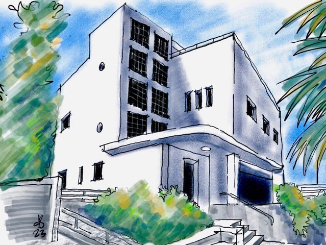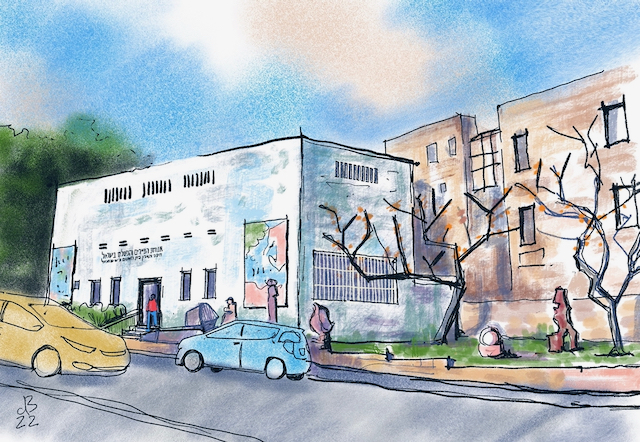 În 1947 a fost construită clădirea școlii de muzică, după proiectul biroului de arhitectură Orel–Zohar. Era o clădire cu un singur nivel, cu plan trapezoidal, ridicată la aproximativ o jumătate de nivel deasupra străzii Bezalel. Accesul se realiza prin scările publice Beitar, care leagă străzile Bezalel și Geula.